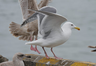 ワシカモメの成鳥はすっかり頭部が白い夏羽の姿になって翼を広げると白さが綺麗に目立ちます。 |