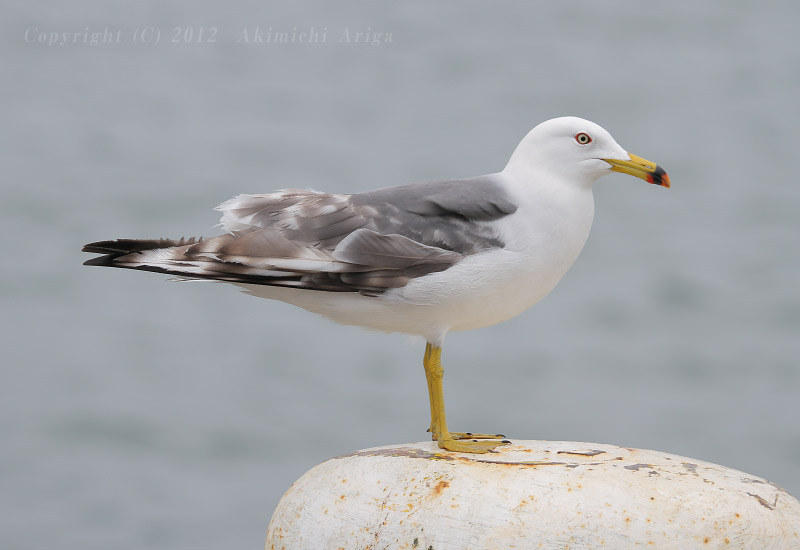 足の黄色味が目立ちました。茶班が後頭部に目立ちますがグレーの濃さはセグロカモメと同じ程度でした。 |