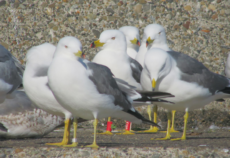 | 標識ウミネコ 成鳥冬羽 V4/T2/C5 この赤いカラーリングは青森県大間町で過去に装着されていました。T2とC5には右足にジオロケーターが合わせて装着されている。 詳細確認中 | |||||||||||||||||||||||||||||||||||||||||||||||