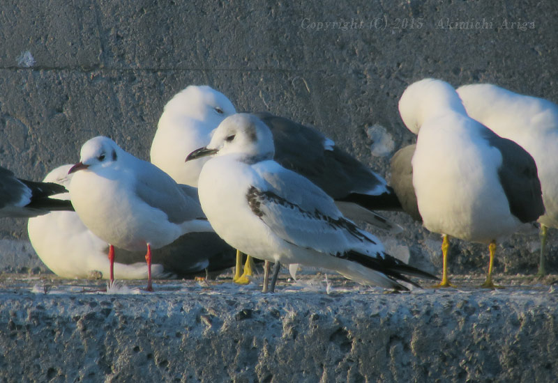 | ミツユビカモメ 成鳥冬羽 今シーズンの個体数は近年の少ない状態が続いていますが、今日はヒメウの並ぶいつもの狭い堤防に珍しく2個体が並んでいました。 | |||||||||||||||||||||||||||||||||||||||||||||||