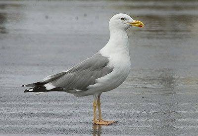 | ホイグリンカモメ(L.h.tainyrensis) 成長夏羽 波崎新港 今シーズン初めて、ホイグリンカモメ (L.h.tainyrensis)が幸運にも突然やってきました。嘴と足のオレンジ味の黄色が冴えてすごく綺麗な個体でした。足が長く見え、背のグレーはウミネコよりやや薄目の濃さでした。 |