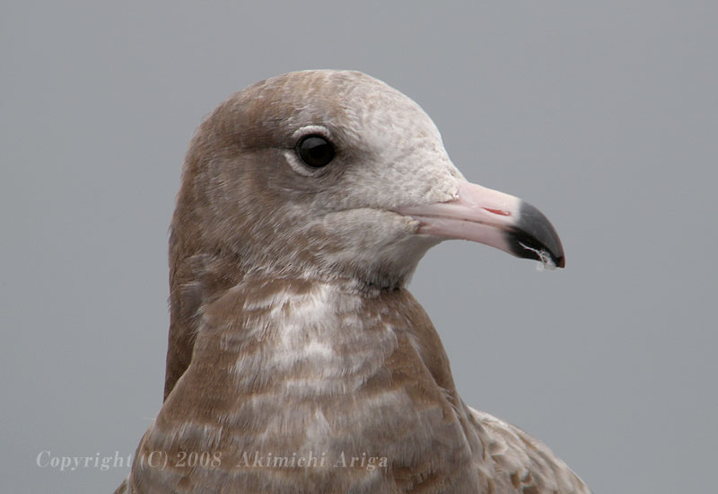| セグロカモメ 幼羽 セグロカモメ幼羽の姿も多く、まだ顔の濃い若い個体も目立ちます。 |